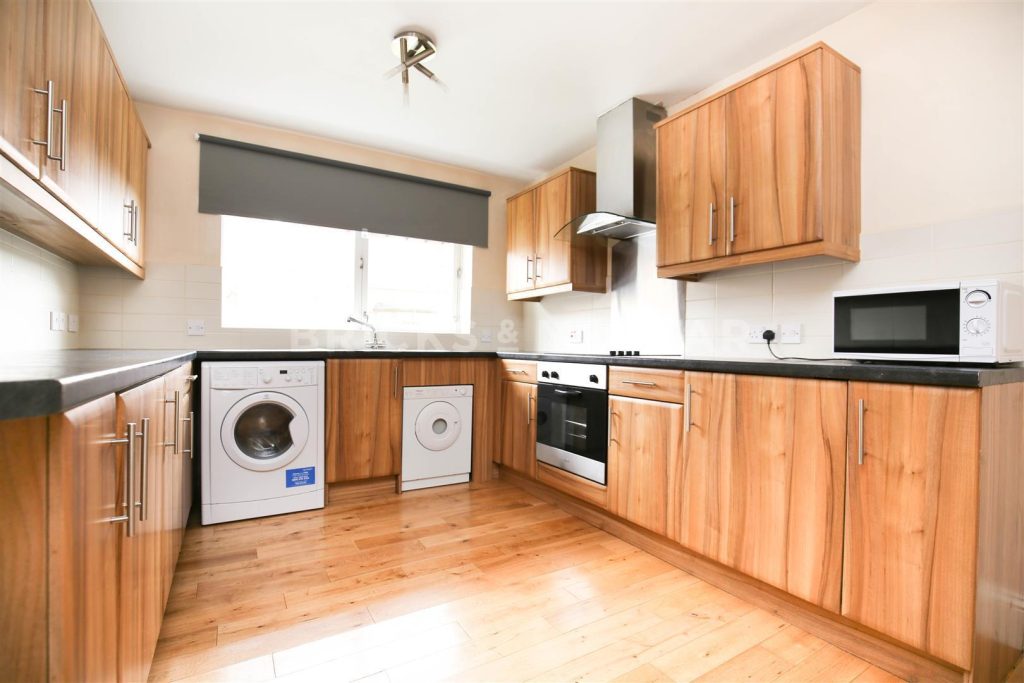 The kitchen has been fitted with contemporary walnut-style units and built-in appliances including a washing machine, fridge freezer, oven and hob. As the kitchen and lounge are open-plan, the space is great for entertaining.