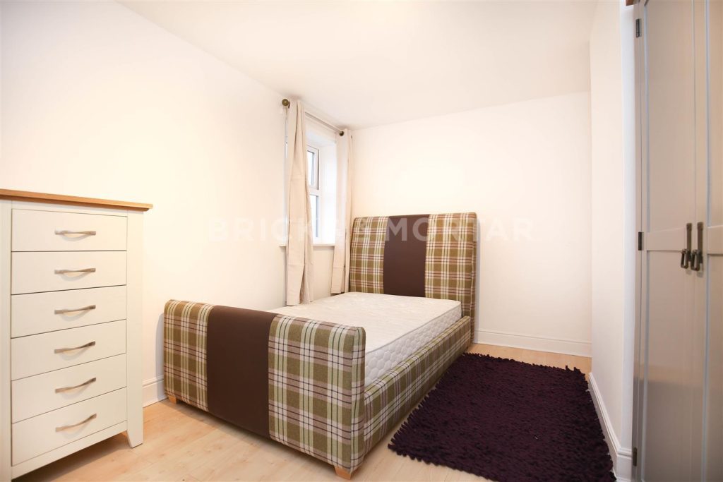 Each of the three bedrooms is generously sized and furnished with matching wooden furniture, offering a great mix of comfort and practicality. The stylish bathroom includes a large bath and shower, adding an extra touch of luxury.