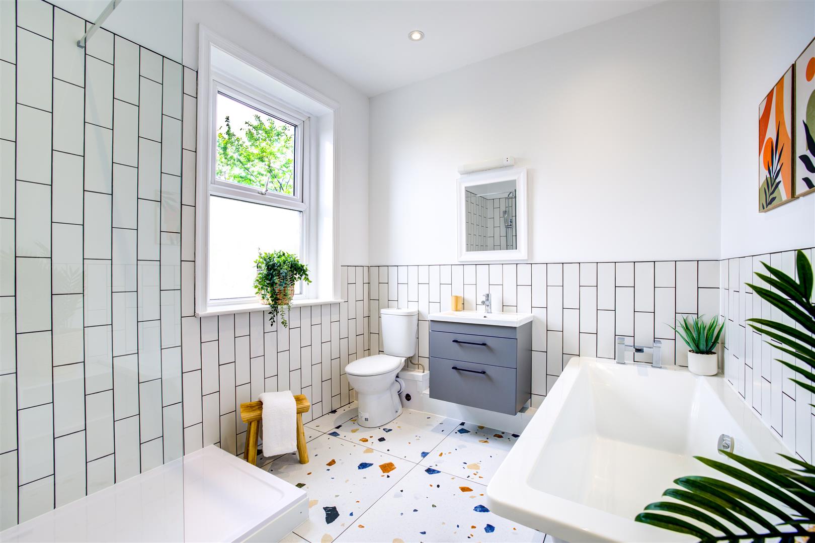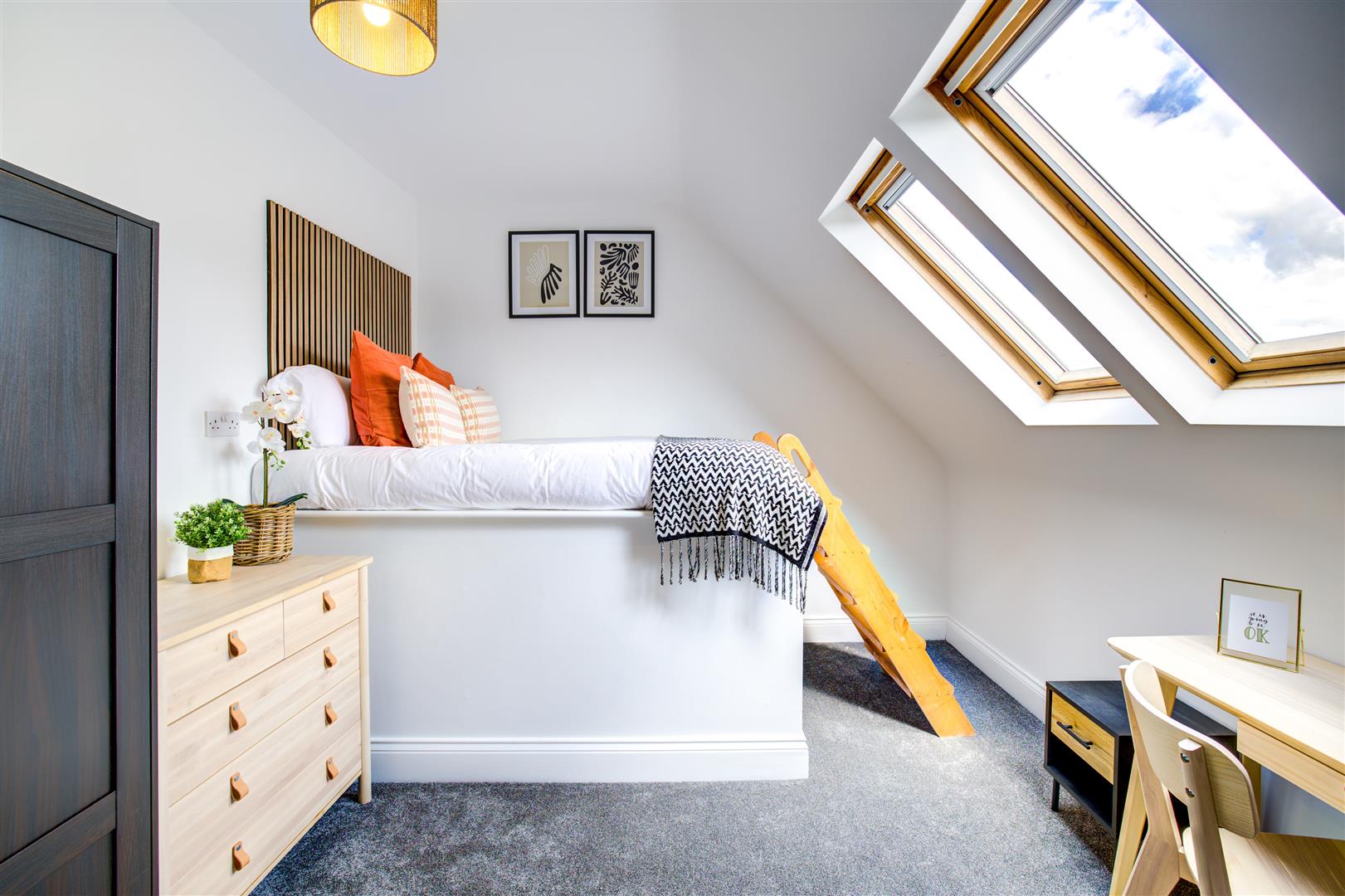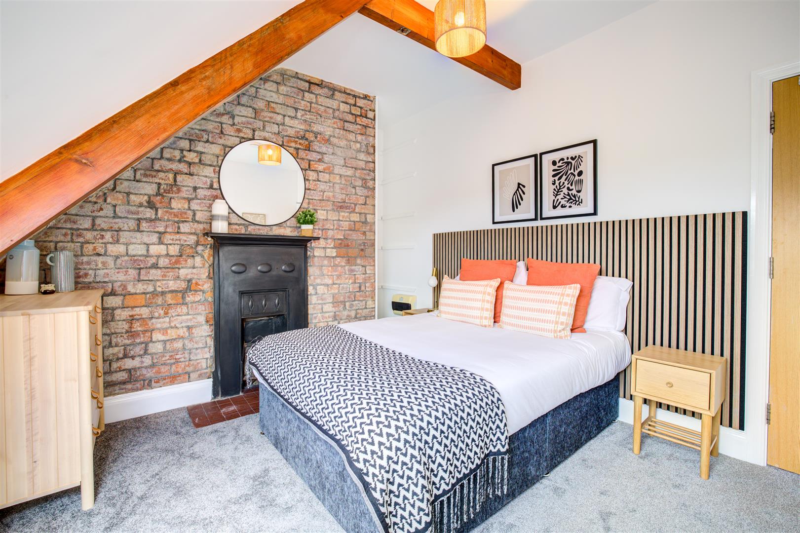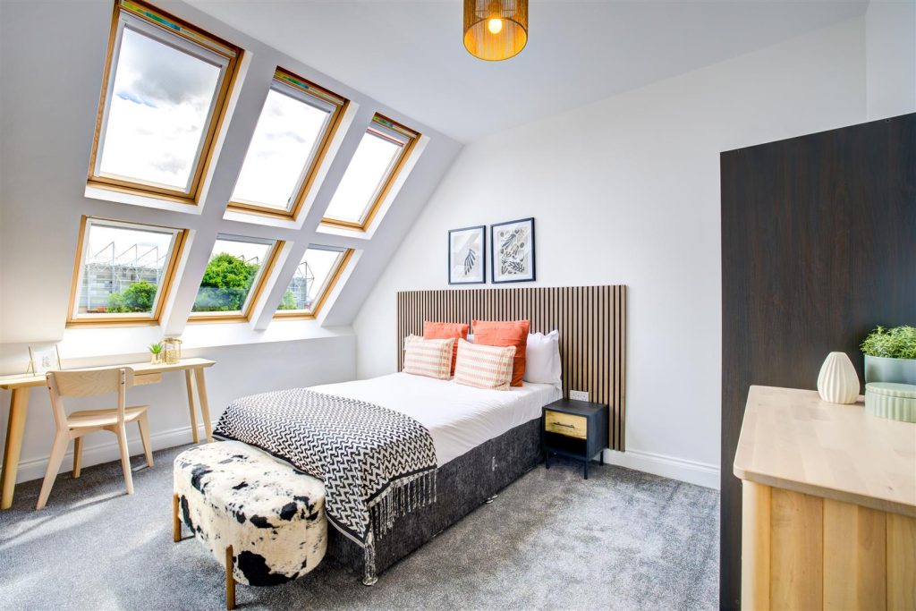 All bedrooms are sizeable doubles and come with beds, desk and chair, wardrobe and carpet flooring. The shower room has a spacious double shower cubicle with glass door, sink and vanity drawer, toilet and quirky tiling.