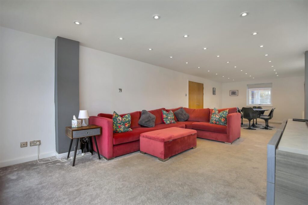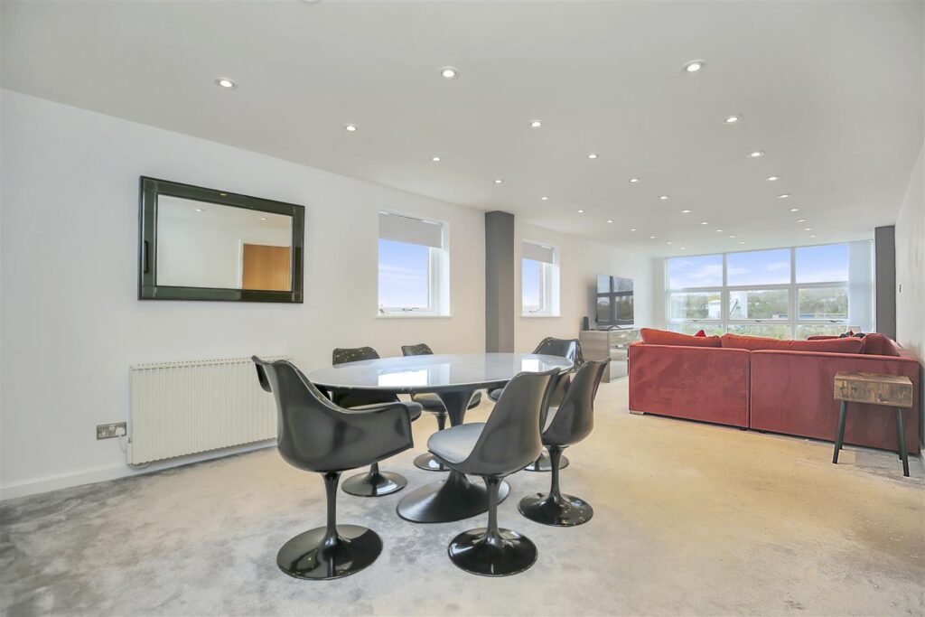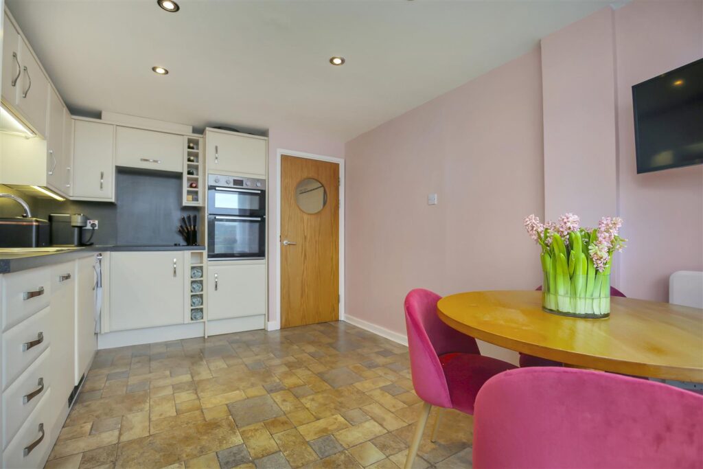 The accommodation comprises of entrance lobby secured via telephone intercom system, with stairs to all levels. Welcoming you with a wall heater, storage cupboard, newly fitted cloakroom, and stairs to the first-floor landing. The lounge/diner offers scenic views from the front, side and rear of the apartment and is complete with a 6 seater dining table and large L shaped sofa.