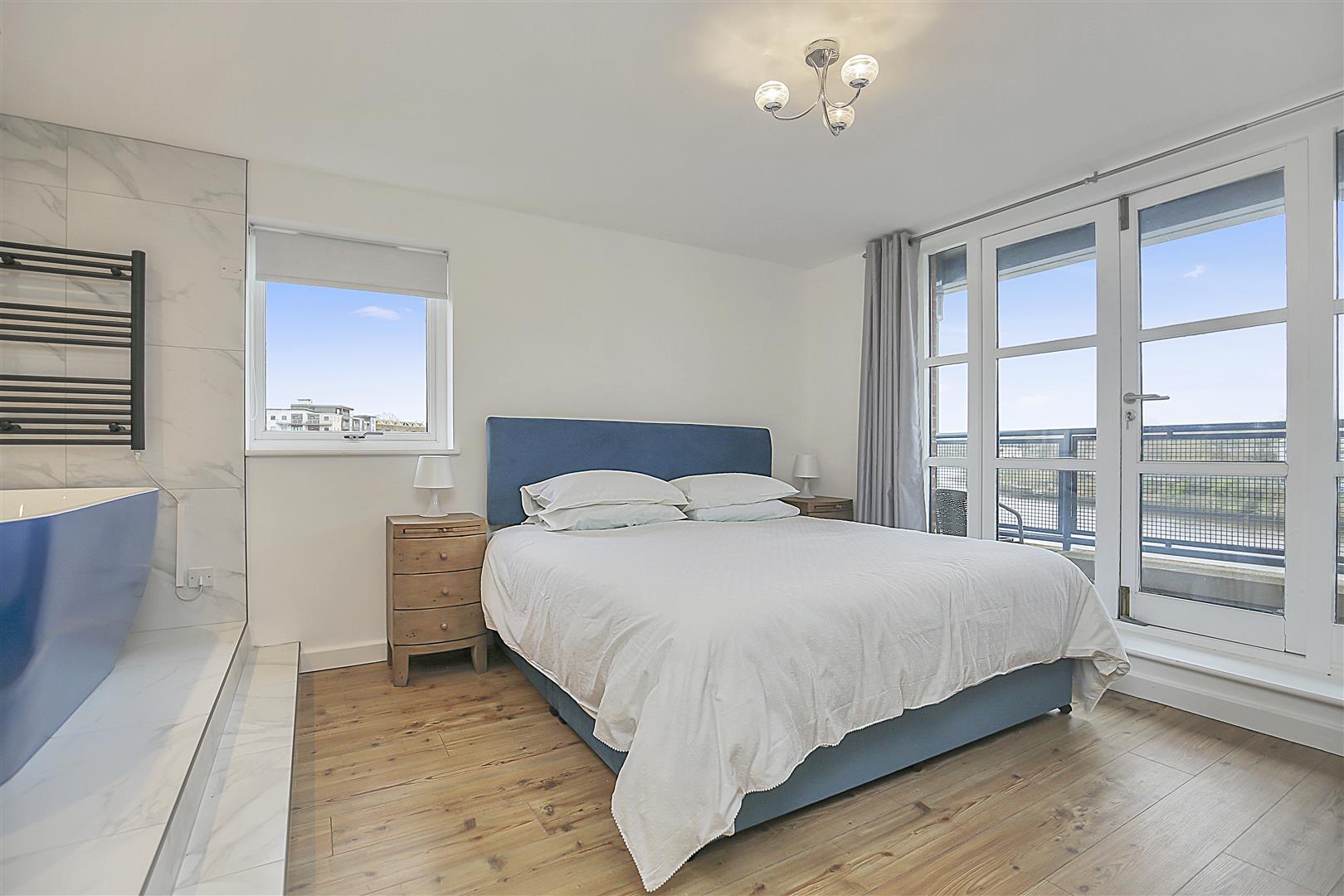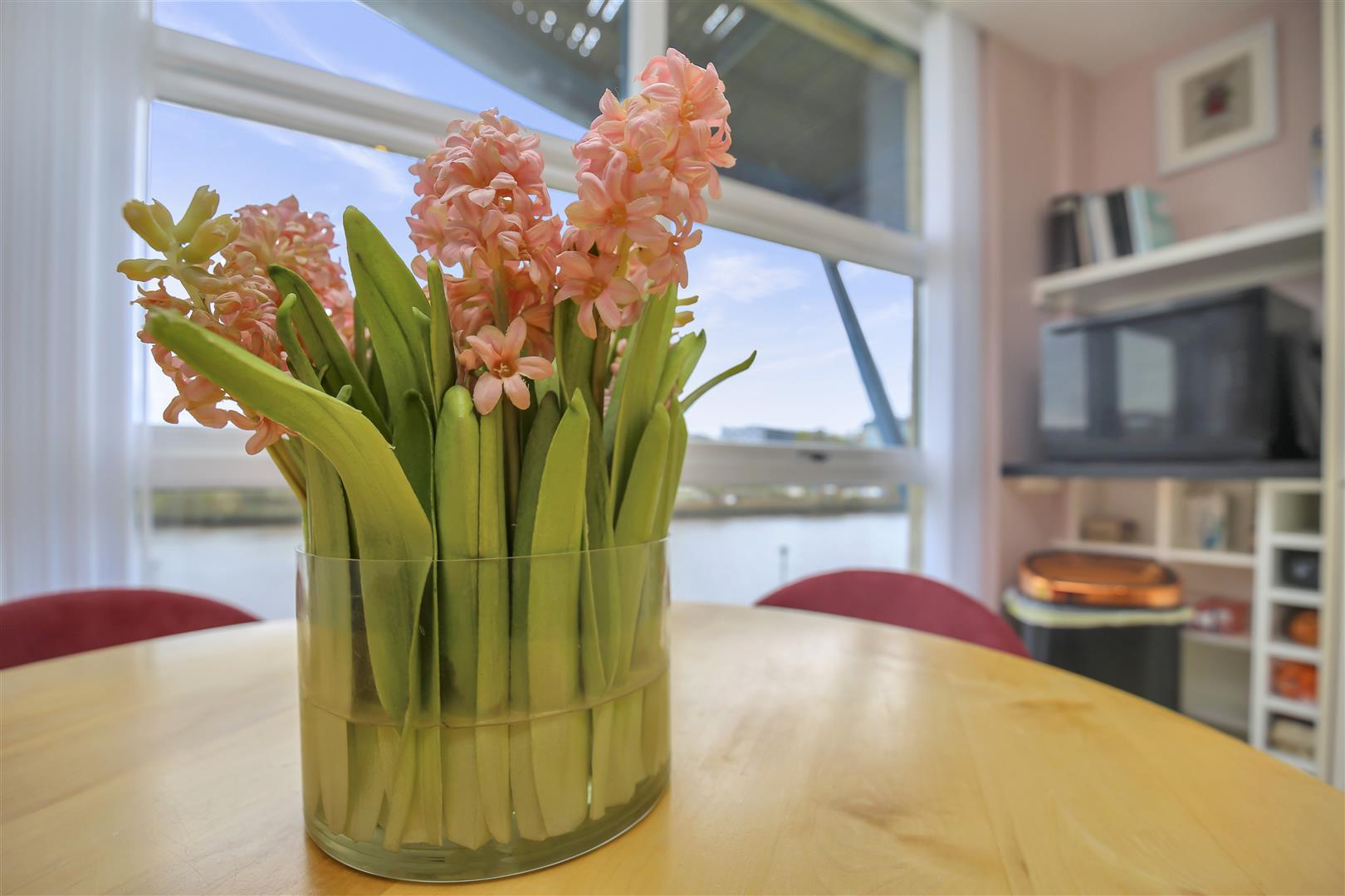 There are three bedrooms, the master with a beautiful large bathtub and double glazed French doors leading to a balcony overlooking The River Tyne, complete with a TV.