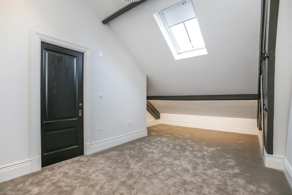 Leading from the living room, bespoke sliding doors open up to the second bedroom but this could be used as a dining room or study to suit the occupants.